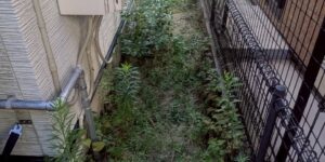 住宅の隙間に生い茂った雑草を草刈りでスッキリ解消