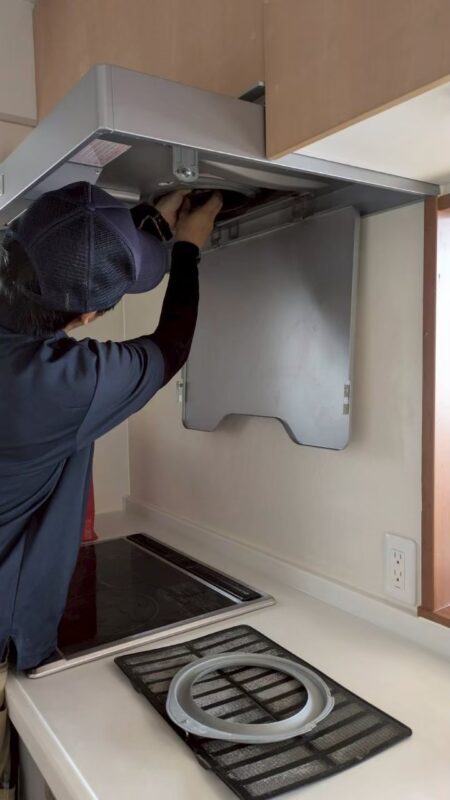 キッチンでは、最も汚れやすい換気扇やコンロまわりを中心に分解洗浄。