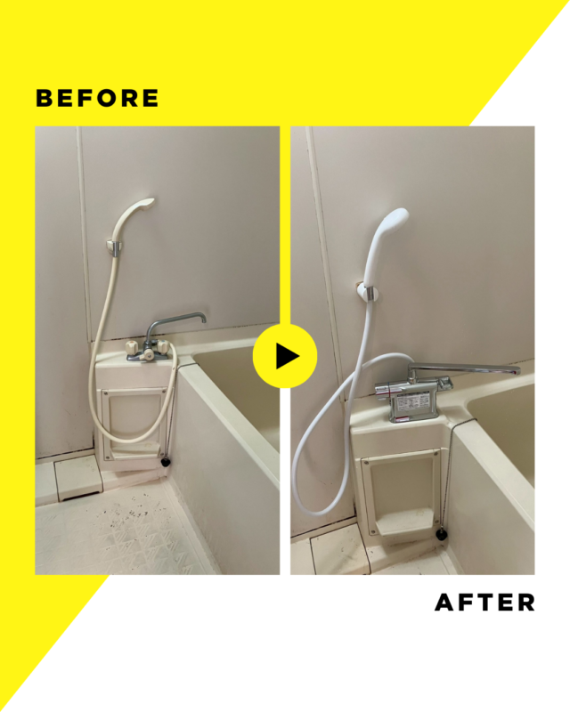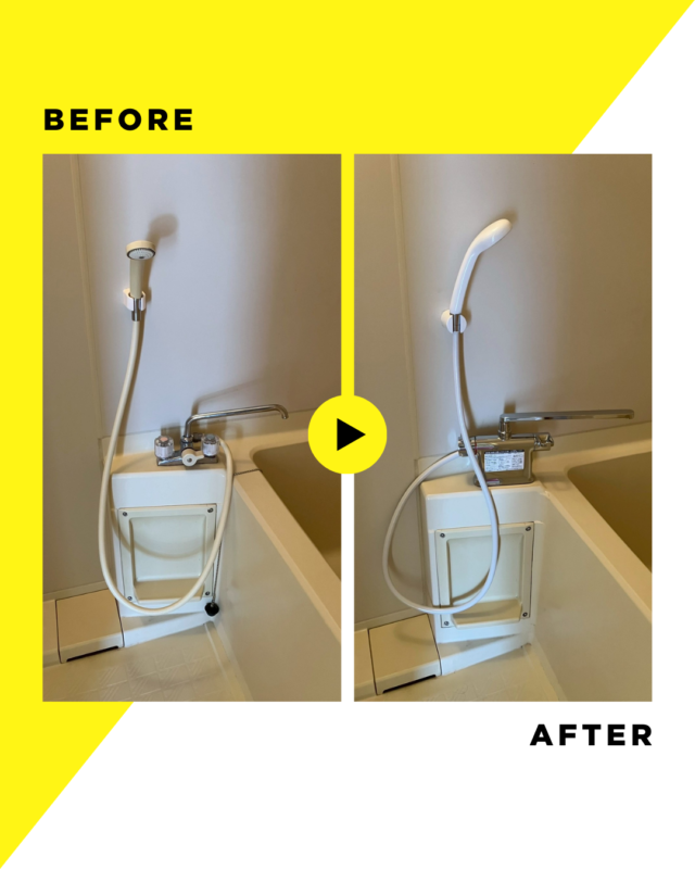 新しい水栓は操作性も良く、見た目もスッキリとした印象になり、浴室全体が明るく感じられる仕上がりとなりました。