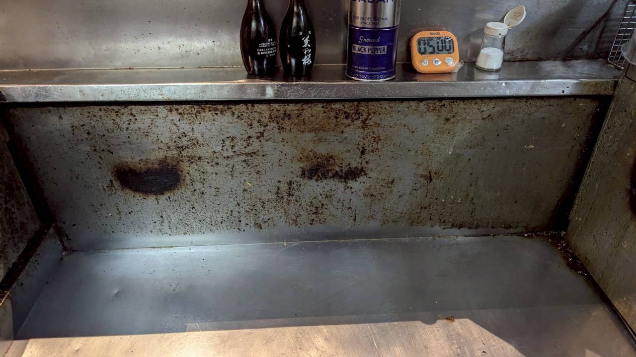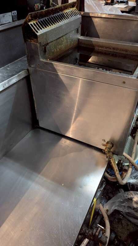 フライヤー廻りについても、気になっていた焦げ付きや油汚れがなくなり、全体的に清潔感のある厨房環境になっています。