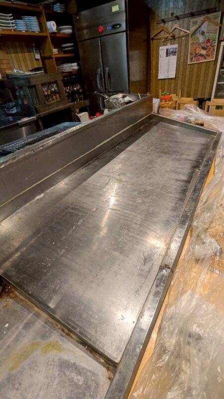 厨房内での作業となるため、他の設備や営業に影響が出ないよう、養生や周囲への配慮を徹底しながら作業を進めています。